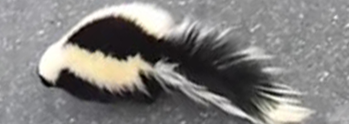 The striped skunks are not the only type of skunks, but they are the most prevalent species. The basic colors of the skunk are white and black. Other colors are red and brown. A typical striped skunk has a V on the back with a white bar on eyes that runs from the forehead to the middle of the rostrum. The color pattern on the wild skunk is variable and it can even be totally black or totally white. A hooded skunk has 3 typical color patterns, but there are some variations. The skunks feature two thin stripes down the side of their body starting from the shoulder to the stomach or a single stripe that runs down the back of the forehead to reach the tail. The single white stripe can be interspersed with the black hair to give a gray appearance. A third color pattern combines the two. Such skunks may have a white bar over their eyes. A spotted skunk is not spotted in reality but has a series of stripes that have been interrupted. They run down the back and the sides of a skunk. The hog nosed, hooded and striped skunks are the same approximate size, which is the same as a house cat. Hog nosed skunks are the largest while the hooded skunk is the smallest of the three types.